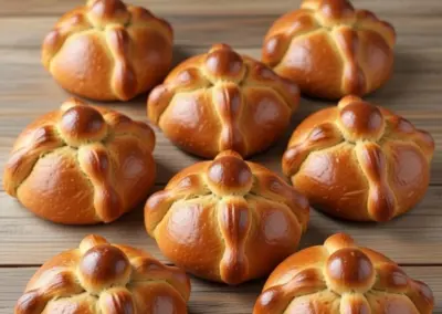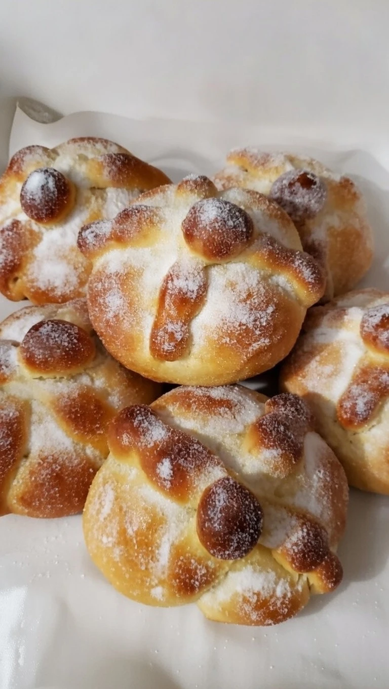 A lightly sweet, enriched yeast bread flavored with fragrant orange zest and anise seeds, shaped with bone-like decorations and dusted in sugar for that classic Día de los Muertos look.