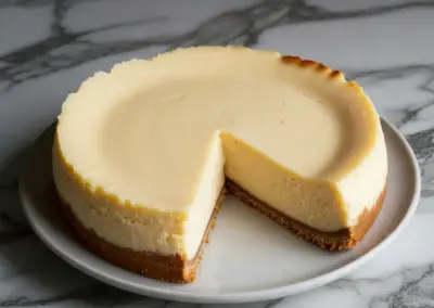 Vibrant strawberry cheesecake — a creamy, rich New York-style base swirled or topped with real strawberry flavor for a perfect balance of tangy and sweet.