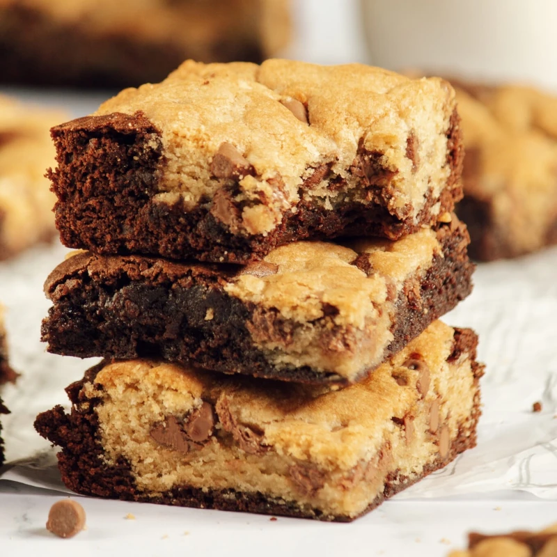 Addictive brookies — the perfect mash-up of rich, fudgy brownie and classic chocolate chip cookie, delivering chewy centers with golden, crisp edges in every bite.